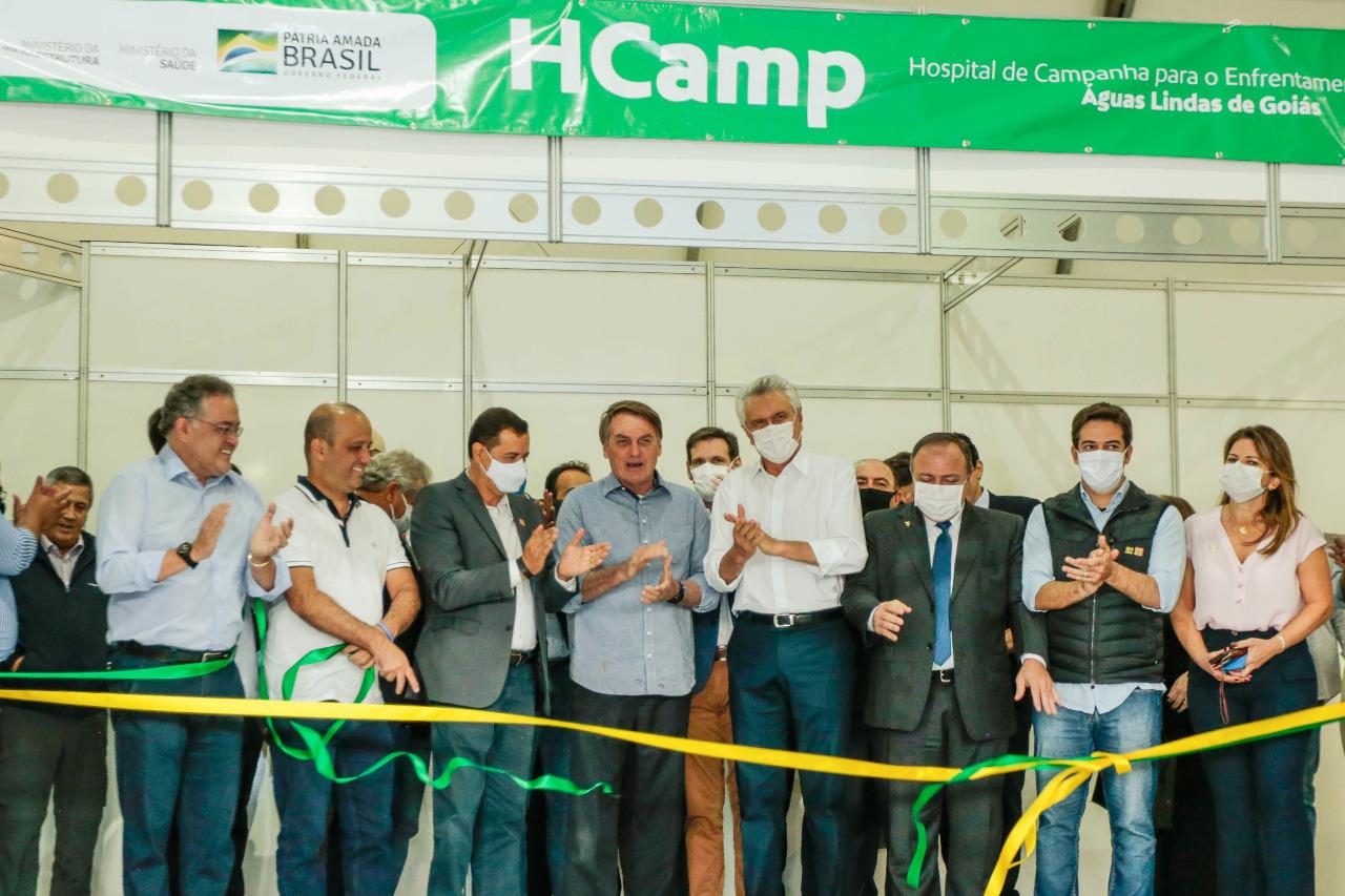 A região do entorno do DF conta a partir de hoje com o Hospital de Campanha de Águas Lindas dotado de 200 leitos iniciando o atendimento com 60, sendo 50 leitos de enfermaria e 10 leitos de Unidades de Terapia Intensiva (UTIs). Os outros leitos serão disponibilizados conforme a necessidade da região. A inauguração aconteceu na manhã desta sexta-feira, 5, e contou com a presença do presidente Jair Bolsonaro (Sem partido), de seu líder na Câmara, deputado Vitor Hugo (PSL), do governador de Goiás, Ronaldo Caiado (DEM), dentre outras lideranças.