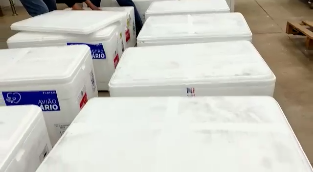 Goiás recebeu 134.400 mil novas doses da vacina Coronavac, que chegaram em um voo comercial no Aeroporto Internacional de Goiânia, na madrugada desta quarta-feira (17/03). A distribuição faz parte da Campanha Nacional de Vacinação contra a Covid-19, do Ministério da Saúde. Após o desembarque os imunizantes foram armazenados na Central Estadual de Rede de Frio, unidade da Secretaria de Estado da Saúde de Goiás (SES-GO), também na capital. As doses passam por uma conferência técnica e, já a partir das 13h desta quarta-feira, começam a ser distribuídas às 18 Regionais de Saúde e, proporcionalmente, para todos os municípios goianos.