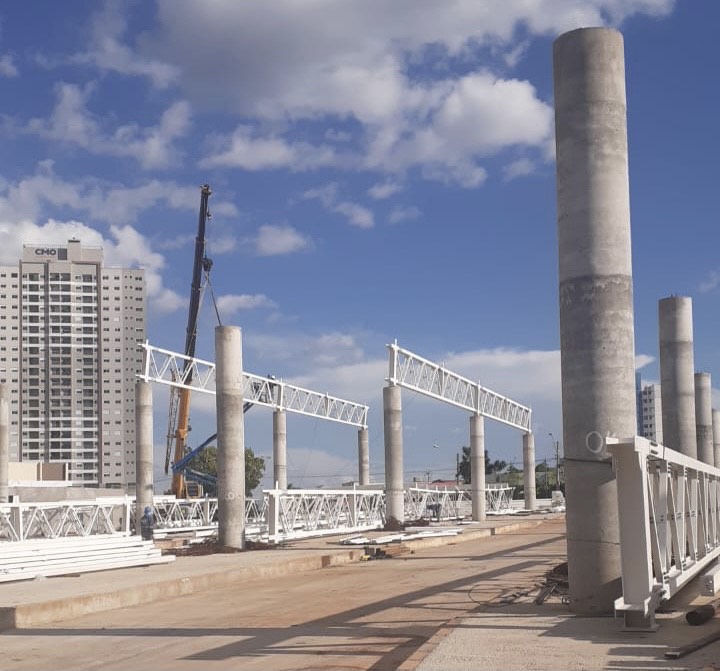 A Prefeitura de Goiânia iniciou a cobertura do Terminal Isidória, no Setor Pedro Ludovico, nesta quarta-feira (31/3), com o lançamento da primeira treliça, por um guindaste de 75 toneladas.