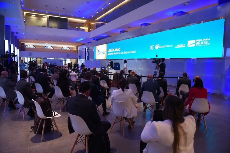 Em leilão realizado hoje (7) na B3 (Bolsa de Valores de São Paulo), foram concedidos 22 aeroportos em 12 estados, arrecadando-se R$ 3,3 bilhões em outorgas. A concorrência foi feita pela Agência Nacional de Aviação Civil (Anac) em três blocos: Norte, Sul e Central.
