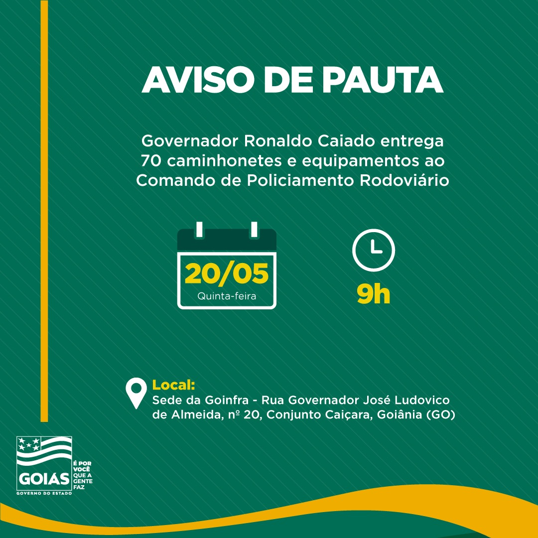 O Comando de Policiamento Rodoviário (CPR) recebe nesta quinta-feira,20, às 9 horas, na sede da Agência Goiana de Infraestrutura (Goinfra),, 70 novas caminhonetes Chevrolet S-10 2.8, 100 computadores e 70 etilômetros. Todos os itens foram custeados pelo Tesouro Estadual.