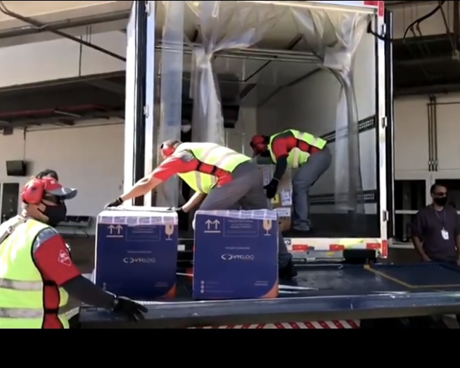 O Governo de Goiás recebeu, neste sábado (31/07), dois carregamentos com um total de 233.130 doses de vacinas contra a Covid-19. A primeira remessa chegou às 9h, com 127.530 imunizantes Comirnaty, fabricados pelo laboratório Pfizer. Depois, às 14h35, outras 105.600 unidades da CoronaVac, do Instituto Butantan, também aterrissaram no Aeroporto Internacional de Goiânia.