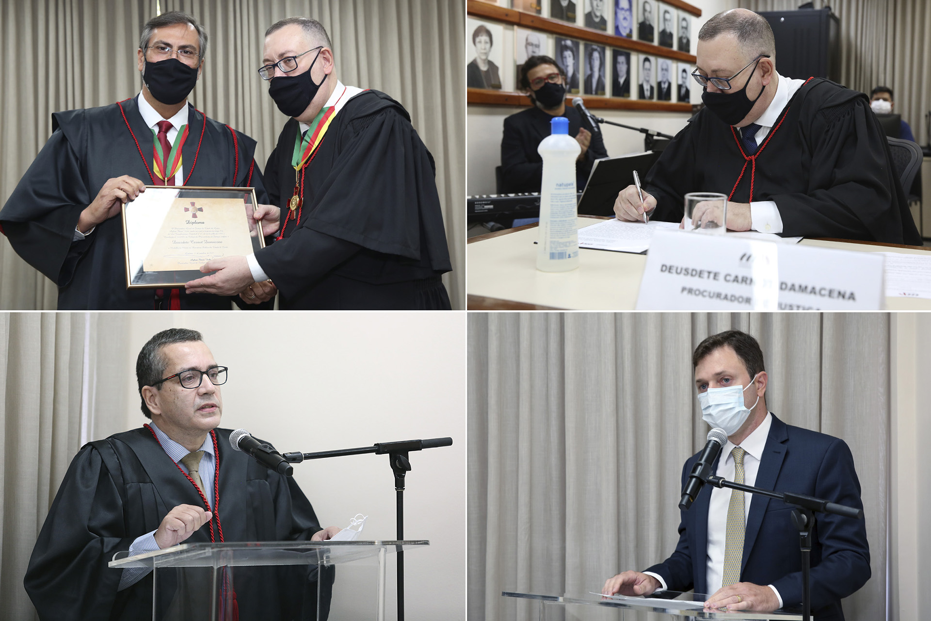 O procurador-geral de Justiça Aylton Flávio Vechi enalteceu a trajetória do novo procurador de Justiça, que tem sido exercida com idealismo, coerência e vitalidade. Segundo ele, Deusdete Carnot Damacena não perdeu a força interna nem o amor à instituição nas mais de três décadas de atuação.