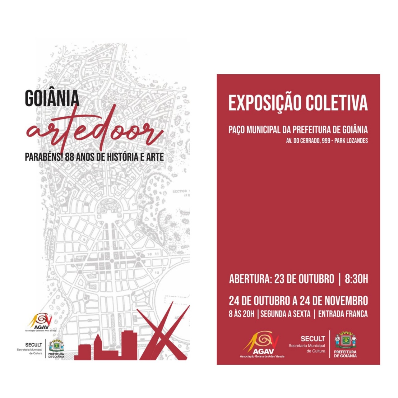 A Associação Goiana de Artes Visuais (AGAV) lança neste sábado (23/10), às 8h30, no Saguão do Paço Municipal, o catálogo da exposição “Goiânia em Arte Door”. O projeto reúne 88 obras de 88 artistas goianos, que serão expostas em 88 outdoor espalhados ao longo do mês pela cidade.