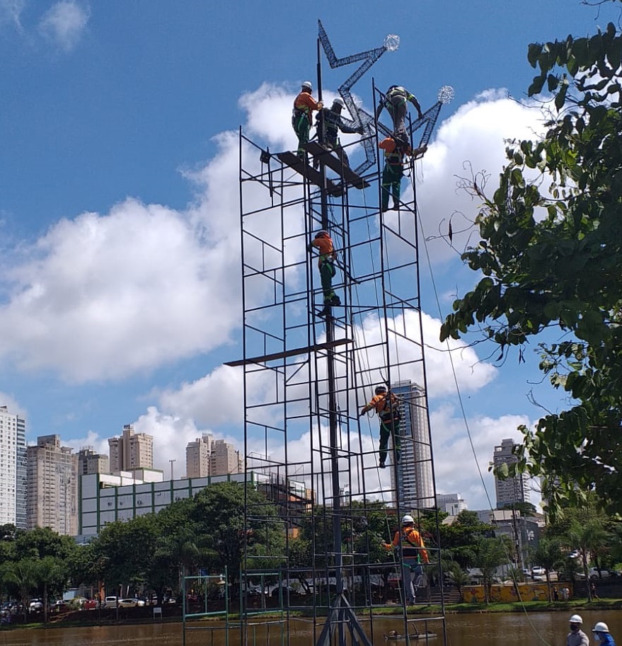 A Companhia de Urbanização de Goiânia (Comurg) prepara a tradicional árvore de Natal do Parque Vaca Brava, localizado na Avenida T-10, no setor Bueno. Como em todos os anos, a estrutura flutuante, com 17 metros de altura e 28 de circunferência, está sendo montada no centro do lago. Visando às festividades de fim de ano, a Comurg também trabalha para deixar os espaços públicos mais acolhedores e agradáveis para que a população tenha lazer seguro e confortável.