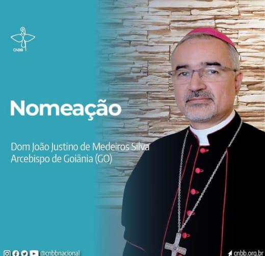 Dom João Justino, de 54 anos, é o novo arcebispo de Goiânia segundo a Conferência Nacional dos Bispos do Brasil (CNBB). Ele, que é arcebispo de Montes Claros (MG) e atual presidente da Comissão Episcopal Pastoral para a Cultura e a Educação da Conferência Nacional dos Bispos do Brasil (CNBB), substitui dom Washington Cruz, que pediu renúncia do cargo por motivo de idade, conforme o cânon 401 do Código de Direito Canônico.
