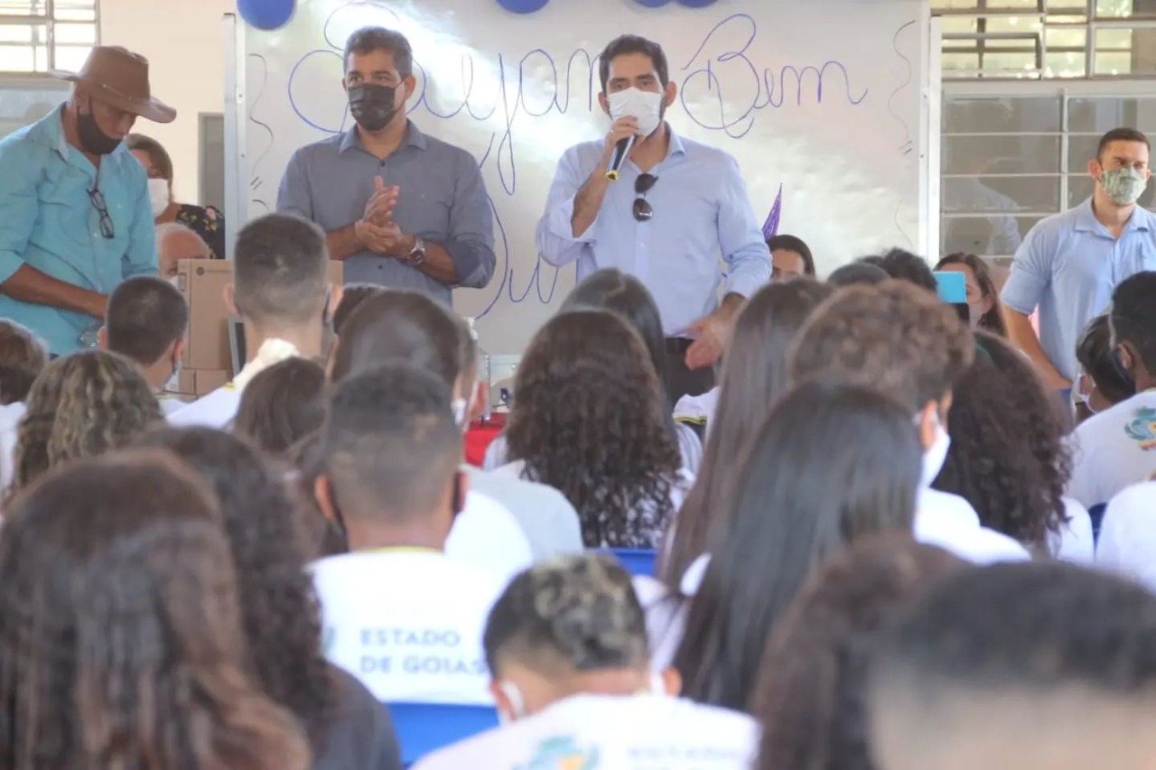 O vice-governador Lincoln Tejota esteve em Crixás nesta quinta-feira (20) para entregar benefícios a estudantes e professores de três escolas no município, ao lado do prefeito Dr. Carlos Seixo e do vice-prefeito Tiago Dietz. Os Colégios Estaduais João Xavier Ferreira, Manoel Lino de Carvalho e Prudêncio Ferreira foram contemplados com R$ 2,9 milhões para reforma e ampliação, kits com chromebooks do projeto Laboratórios Portáteis de Informática da Secretaria de Estado da Educação, e conjuntos de uniforme completos.