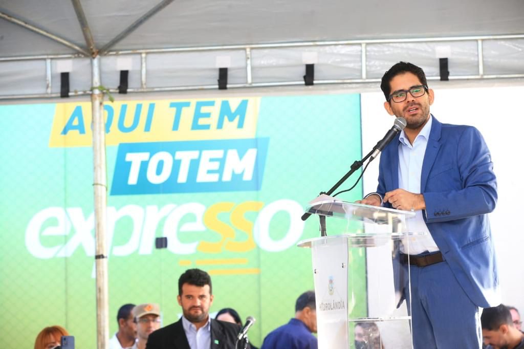 O vice-governador Lincoln Tejota, representando o governador Ronaldo Caiado, inaugurou nesta quarta-feira (18/05), em Hidrolândia, a nova agência do Vapt Vupt construída por meio de parceria entre o Estado, iniciativa privada e prefeitura, e ainda, as reformas das quadras poliesportivas dos colégios estaduais Deputado Manoel Mendonça e Geraldo Batista de Oliveira. A unidade terá capacidade para atender 10 mil pessoas por mês e oferece mais de 500 serviços de 40 órgãos diferentes, além de contar com um totem do Programa Expresso, que disponibiliza serviços estaduais de modo totalmente digital.