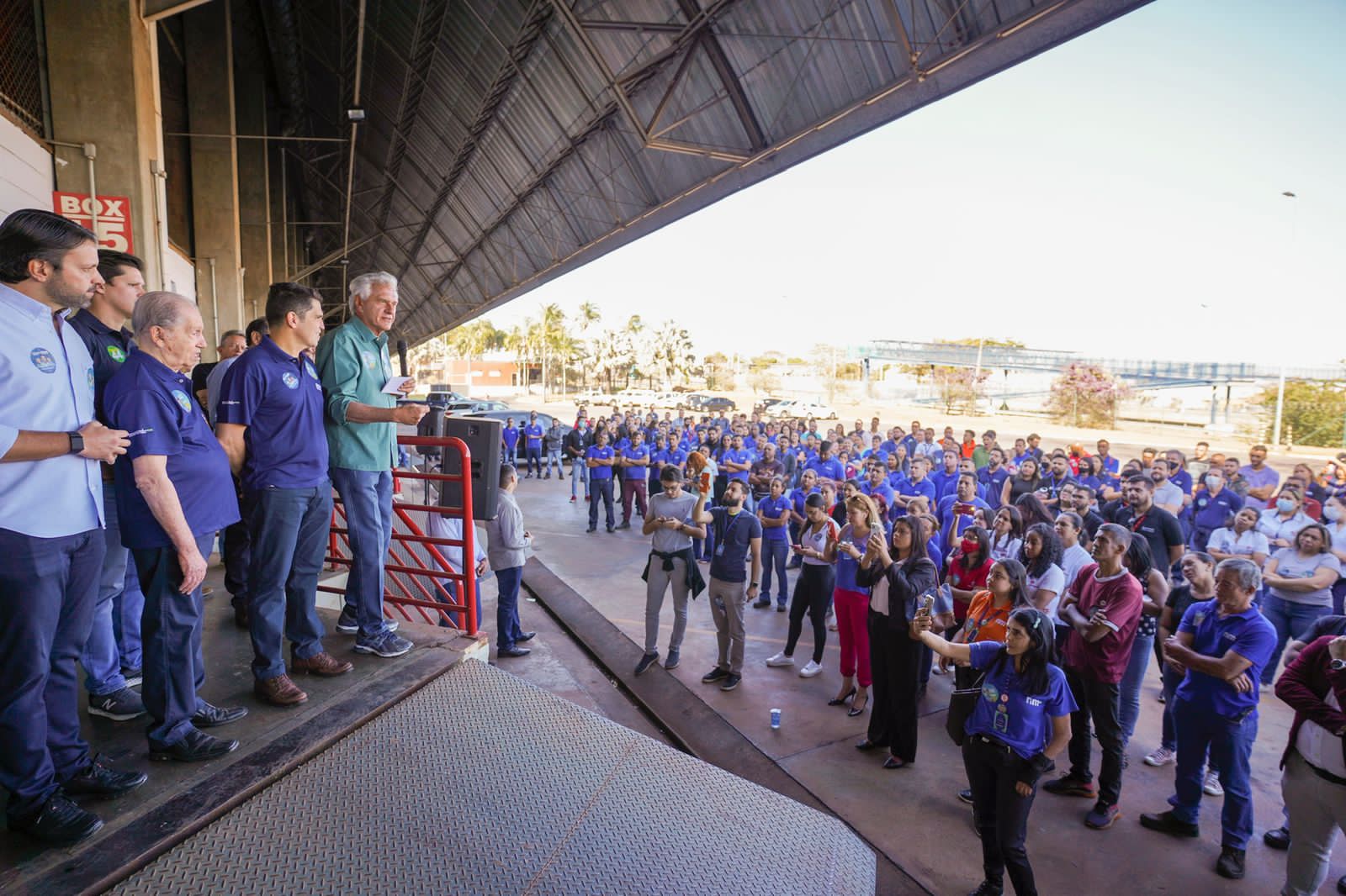 Após o plantio, Caiado caminhou pelas instalações, cumprimentando os colaboradores e posando para fotos. Passou pelas docas, onde as carretas descarregam os produtos, que são posteriormente distribuídos para as lojas. Caiado também relembrou a situação caótica do ponto de vista fiscal com que recebeu o Estado, com apenas R$ 11 milhões em caixa e R$ 7,6 bilhões em dívidas de curto prazo. “Fomos o único Estado no Brasil que deu conta de renegociar as dívidas”, recordou, arrancando aplausos.