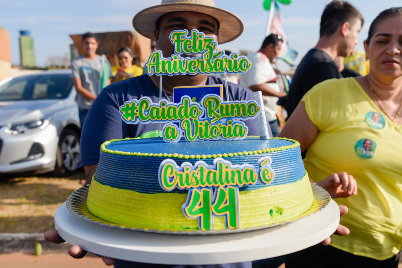 Em todas as cidades, o aniversário de Caiado foi festejado com bolos e o tradicional ‘parabéns’, entoado por apoiadores diversas vezes. Durante o trajeto, o governador também foi presenteado com doces e uma camisa da Seleção Brasileira. Em Valparaíso, Caiado chegou a parar a carreata por instantes para receber uma imagem de Nossa Senhora das mãos de dona Maria das Crianças, moradora do bairro Céu Azul.