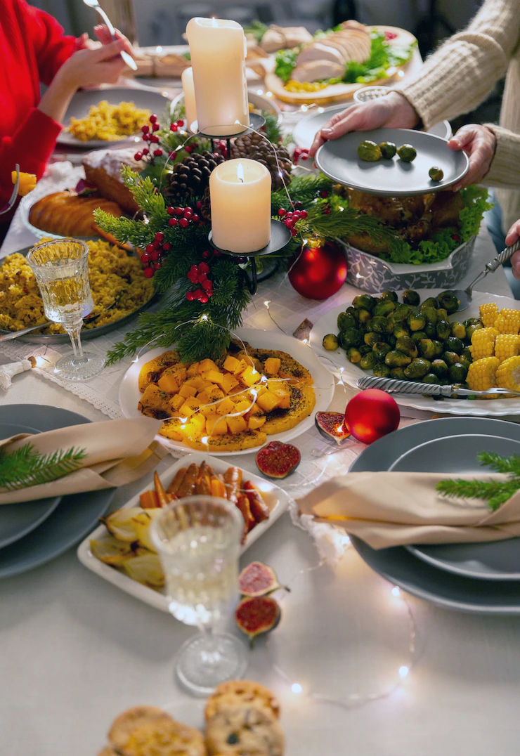 Natal e Ano Novo são épocas de confraternização, e a ceia, com a socialização entre familiares e amigos à mesa, é um dos pontos altos das festas de fim de ano. Por isso, nesta época, muitas pessoas deixam a dieta de lado e acabam exagerando. São entradas, jantar, churrasco, bolos, doces, além da bebida, sem mencionar o almoço no dia seguinte.