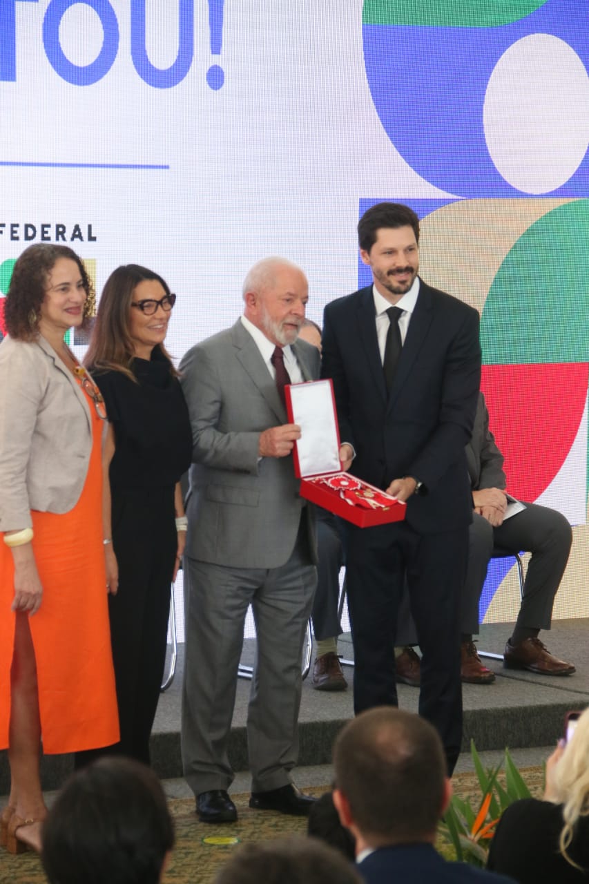 O vice-governador do Estado de Goiás, Daniel Vilela, recebeu nesta quarta-feira (12/7) a Ordem Nacional do Mérito Científico, em cerimônia realizada no Palácio do Planalto. A condecoração foi outorgada pelo presidente da República, Luís Inácio Lula da Silva, e se trata da mais alta honraria concedida pelo poder público a personalidades nacionais e internacionais que contribuíram para o desenvolvimento da ciência, tecnologia e inovação no Brasil.