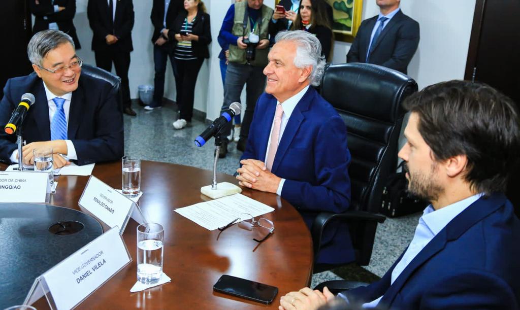 “Quero buscar a experiência chinesa e desenvolver o nosso estado. Precisamos avançar nos acordos internacionais e costurar espaços para o empresário goiano”, afirmou Caiado durante encontro com o embaixador, no Palácio das Esmeraldas. As tratativas estão mais avançadas com os grupos Chint Power, de soluções em energia, YTO Group Corporation, montadora de tratores, e Weichai Group, de motores elétricos.