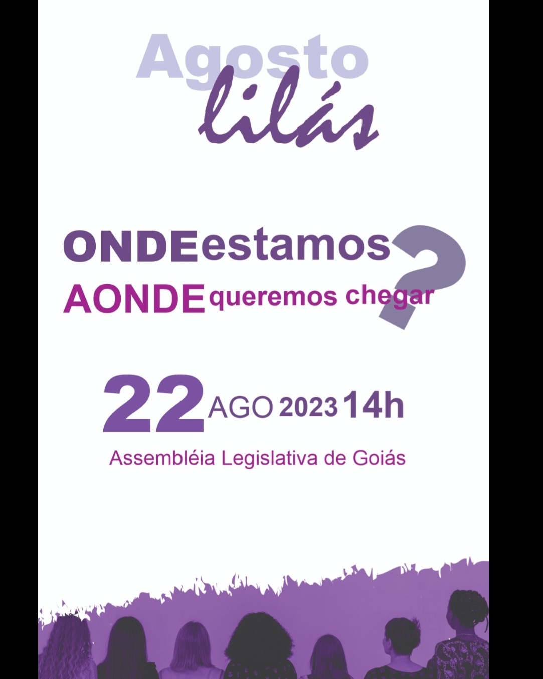 A Federação das Mulheres de Goiás promove nesta terça-feira,22, às 14 horas, na Assembleia Legislativa de Goiás, o evento “Feminicídio, uma Estrutura que Precisa ser Vencida,” dentro da programação do Agosto Lilás, dedicado à conscientização pelo fim da violência contra a mulher. A campanha foi criada em referência à Lei Maria da Penha, que em 2023 completa 17 anos, e surgiu para amparar mulheres vítimas de vários tipos de violência como física, sexual, psicológica, moral e patrimonial.