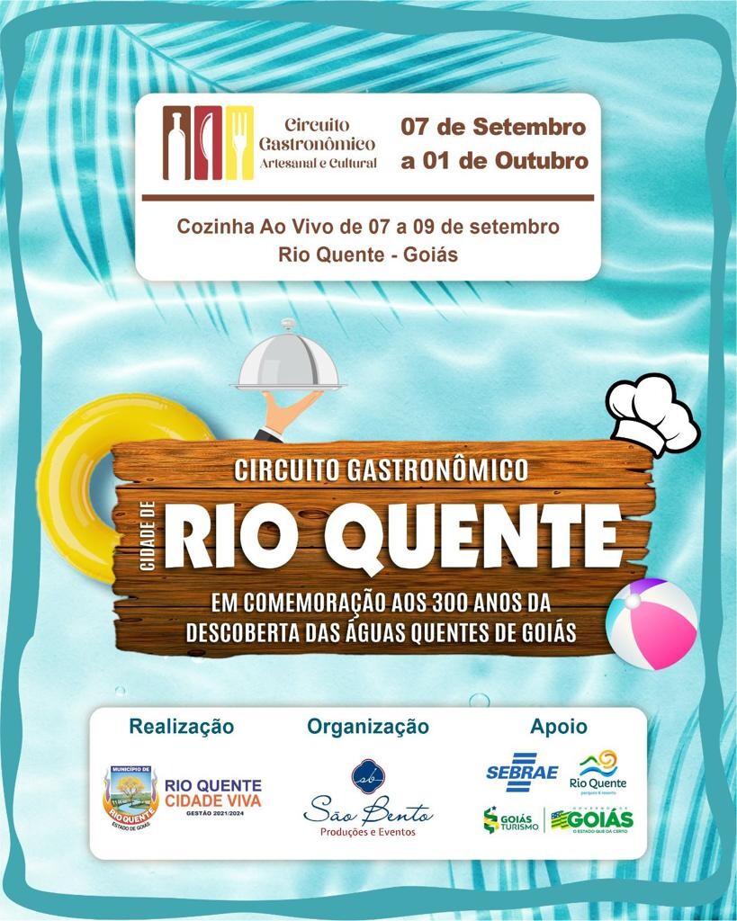 A cidade de Rio Quente realiza no feriado de 7 de setembro, a abertura do Festival Gastronômico da cidade. O circuito ocorrerá até dia 1 de outubro, oferecendo uma oportunidade aos amantes da boa comida de conhecerem a culinária local. Os participantes poderão fazer uma viagem histórica através do paladar. O festival vai apresentar comidas típicas e contemporâneas preparadas com ingredientes selecionados.