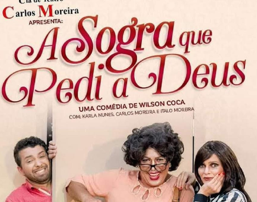 A cidade de Caldas Novas recebe nesta terça-feira,3 e quarta-feira,4, a comédia “A Sogra que pedi a Deus”, da Cia de Teatro Carlos Moreira. A apresentação será às 20 horas, no Museu dos Bonecos Gigantes, na Av. das Nações, Qd. 1, Lt. 4, no Jardim dos Turistas, em Caldas Novas.
