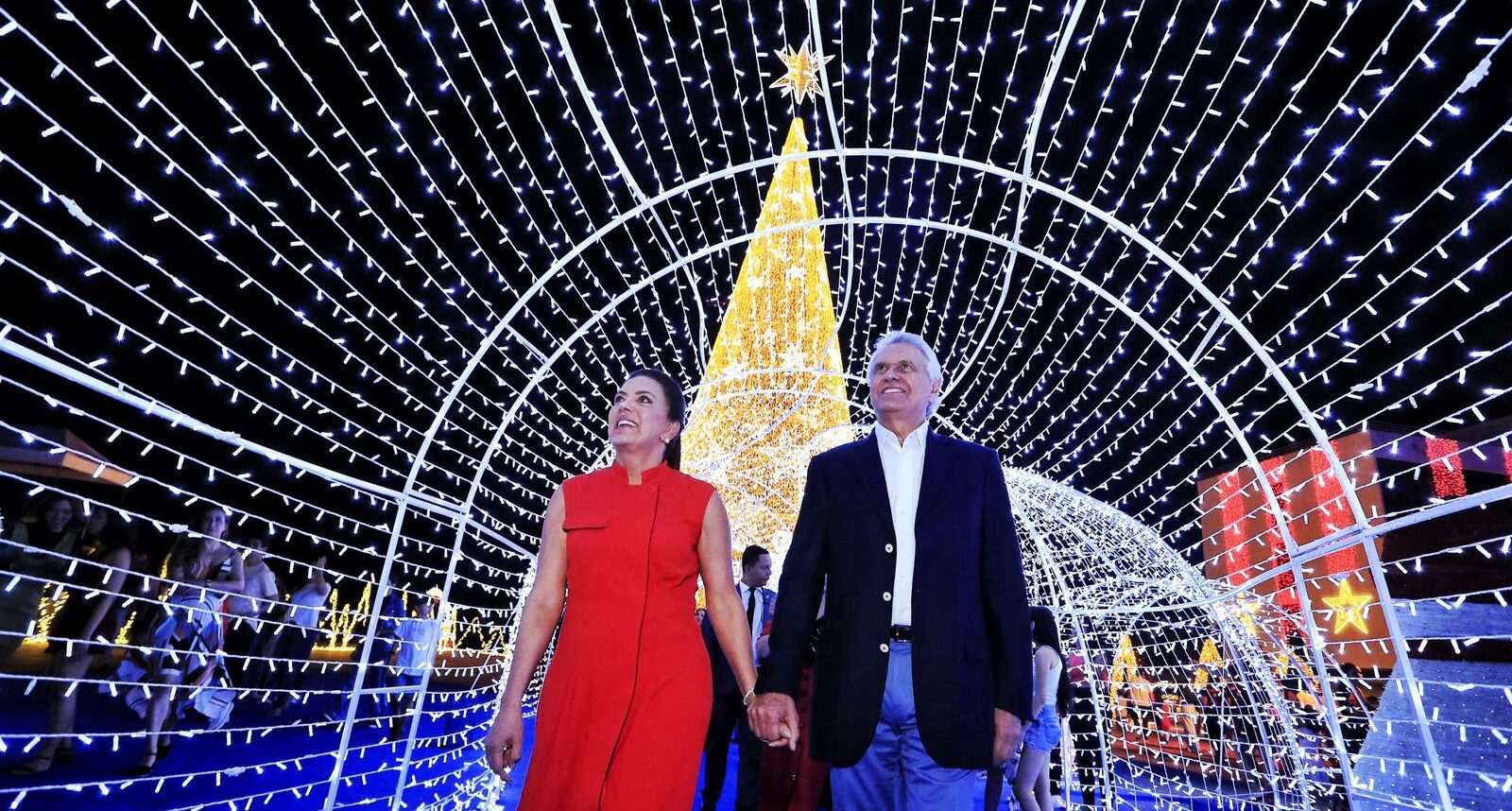 O governador Ronaldo Caiado e a coordenadora do Goiás Social, Gracinha Caiado, deram início oficialmente ao Natal do Bem, nesta quinta-feira, no Centro Cultural Oscar Niemeyer (CCON), em Goiânia. Até o dia 6 de janeiro, o espaço fica aberto ao público de terça a sexta-feira, das 18h às 23h, e sábados, domingos e feriados, das 16h às 23h. Considerada a segunda maior celebração natalina do país e maior do Centro-Oeste, a festa terá mais de 400 apresentações culturais, com toda a programação gratuita.