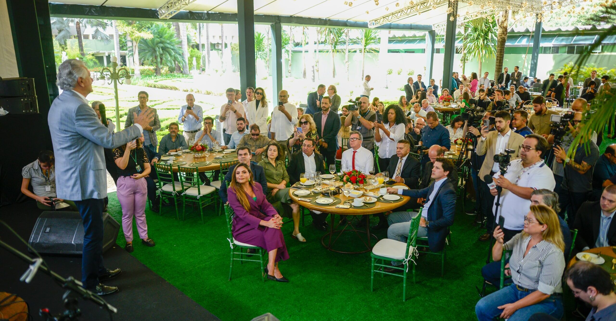 O governador fez questão de homenagear o secretário de Comunicação de seu Governo, Gean Carvalho e sua equipe na Secom goiana, destacando que governar é também a capacidade de aprender. “Quero destacar o trabalho do nosso secretario Gean com quem debato pontos polêmicos que norteiam a nossa vida de homem público e que trouxe equilíbrio ao nosso Governo e cuja capacidade de comunicar com os veículos de comunicação, foi ressaltada pelos presentes”, disse Caiado puxando aplausos, e declarando que “os governantes devem abrir seus dados para a população”. Cerca de 170 executivos, gestores, jornalistas e radialistas de veículos da capital participaram do evento.