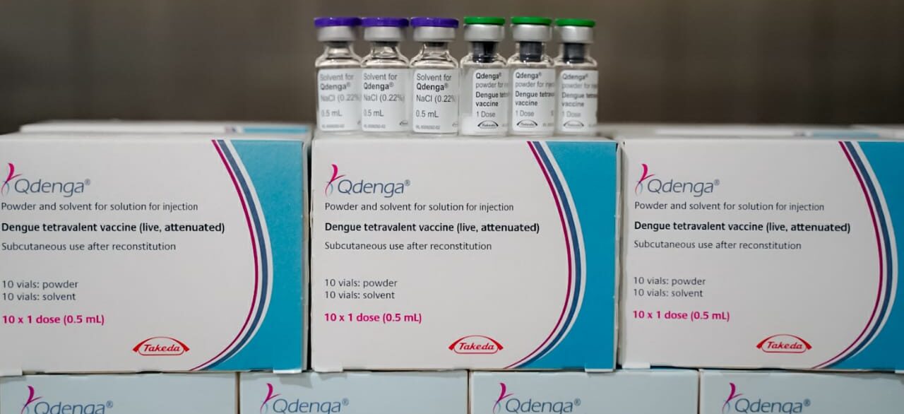 Vacina – Distribuída pela farmacêutica japonesa Takeda, a vacina Qdenga teve o registro aprovado pela Agência Nacional de Vigilância Sanitária (Anvisa) em março de 2023. Trata-se de uma vacina viva atenuada, que não causa a doença, composta pelos quatro sorotipos vivos do vírus da dengue: DEN1, DEN2. DEN3 e DEN4. O imunizante não protege contra chikungunya, zika e febre amarela.