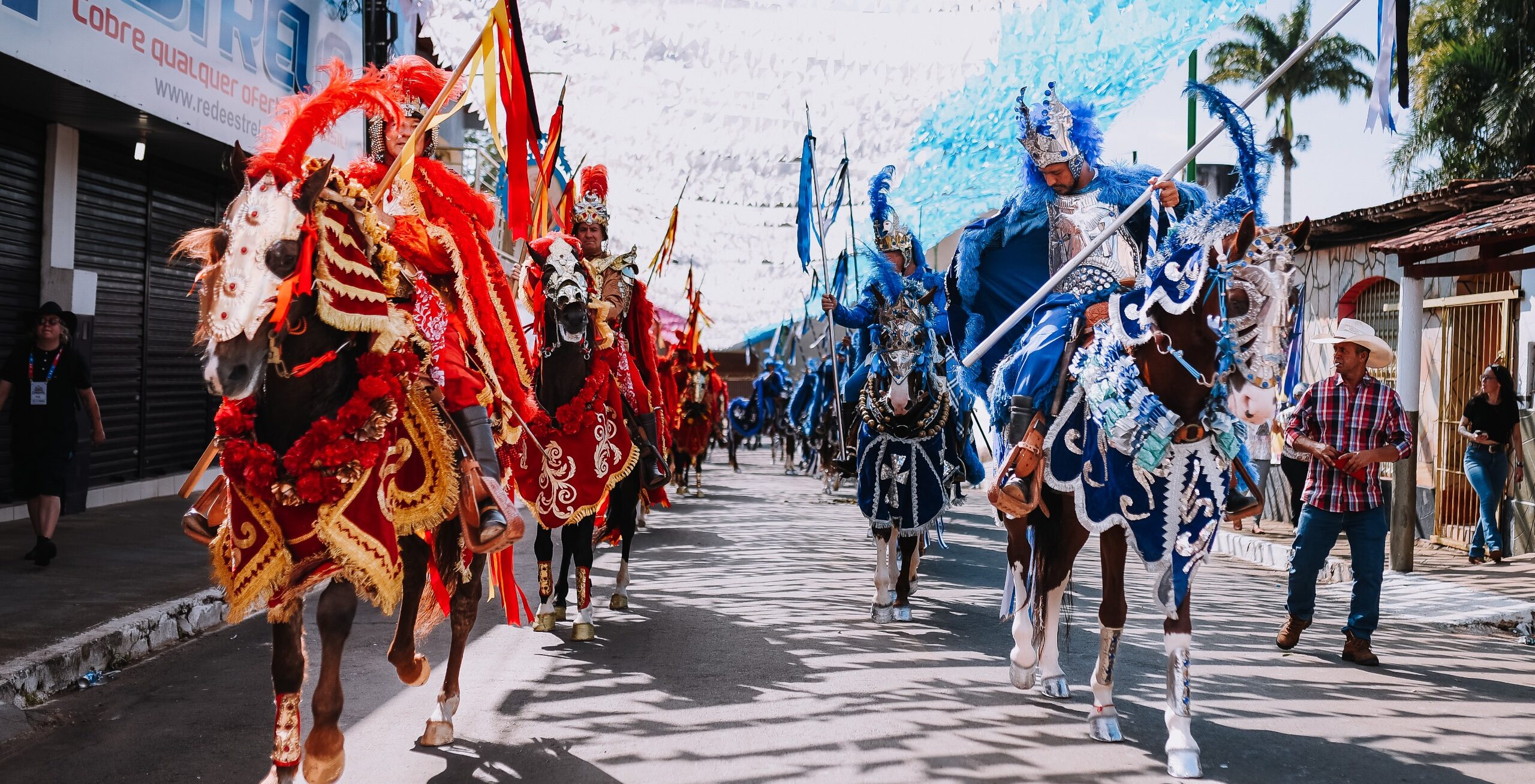 Representação – As Cavalhadas são uma representação tradicional dos torneios medievais que recriam as batalhas entre cristãos (vestidos de azul) e mouros (trajados de vermelho). A manifestação é inspirada no livro “Carlos Magno e Os Doze Pares da França”, quando o guerreiro cristão batalhou contra os sarracenos, de religião islâmica.
