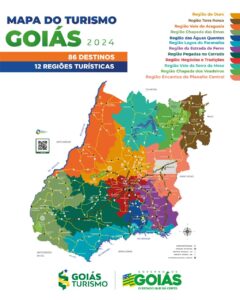 A Goiás Turismo, divulgou, nesta quarta-feira, 19, o novo Mapa do Turismo 2024, que passa a contar com 86 municípios, distribuídos em 12 regiões turísticas (Ouro, Chapada dos Veadeiros, Chapada das Emas, Estrada de Ferro, Águas Quentes, Encantos do Planalto Central, Negócios e Tradições, Lagos do Paranaíba, Pegadas no Cerrado, Terra Ronca, Serra da Mesa e Vale do Araguaia).