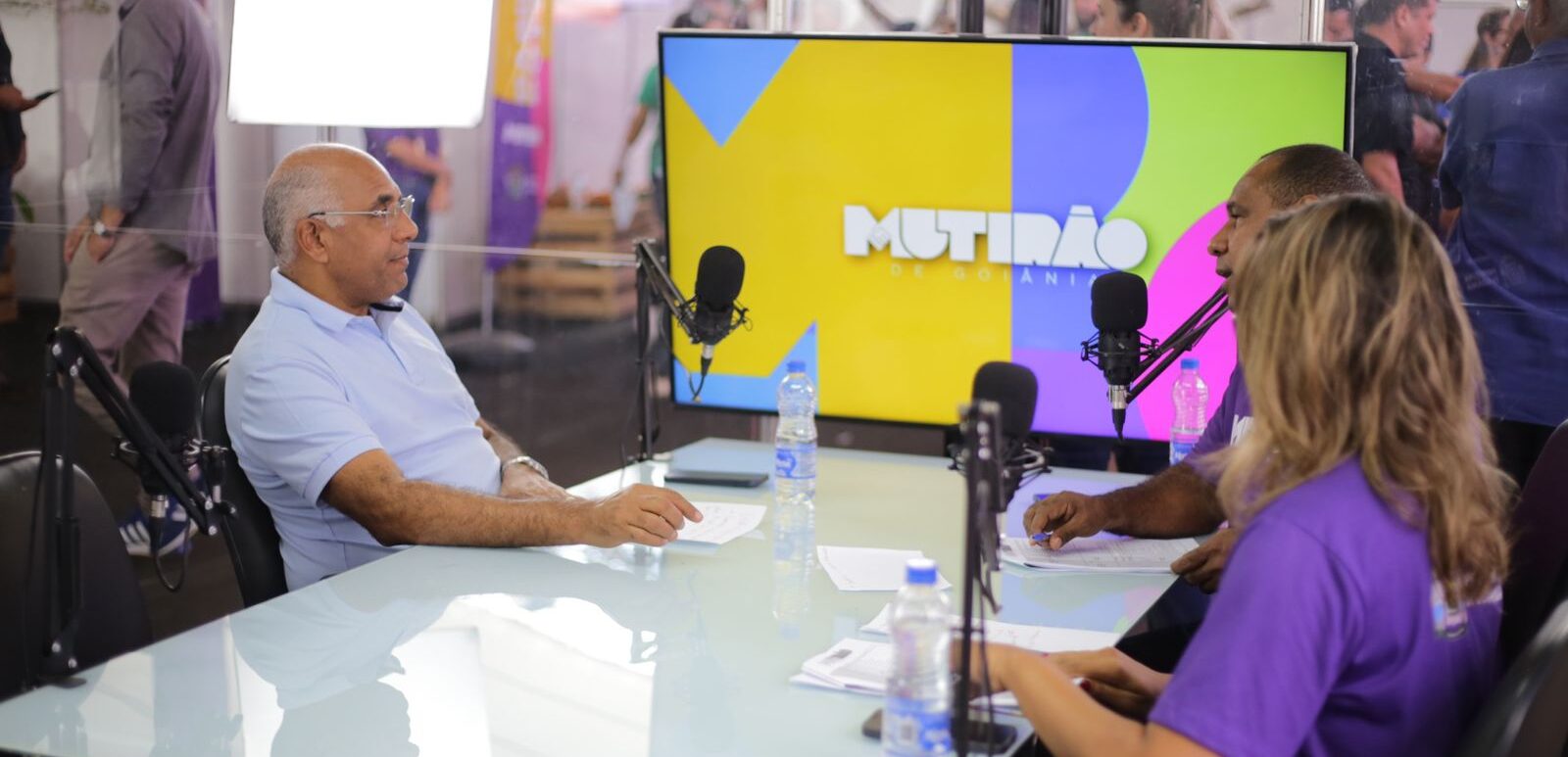 Investimentos em saúde, educação e segurança pública no município de Goiânia, além da importância do gabinete itinerante, pautaram o PodCast Tô no Mutirão, com a participação do prefeito Rogério, apresentado pelo radialista Jota Sobrinho, na manhã deste sábado (22/6). O bate-papo ocorreu direto do estande montado na Rua JC-1, esquina com a Avenida do Povo e Rua da Divisa, entre os bairros Jardim Curitiba e Vila Mutirão.