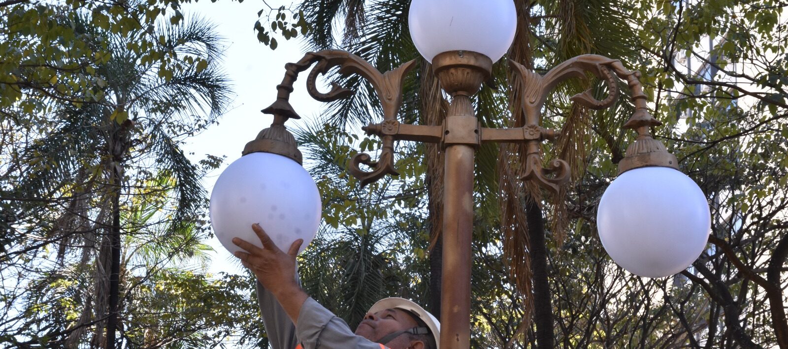 Com a chegada das mesmas, os globos das luminárias serão recolocados, com iluminação em LED, que tem um custo menor de manutenção e uma vida útil maior, trazendo economia aos cofres públicos.