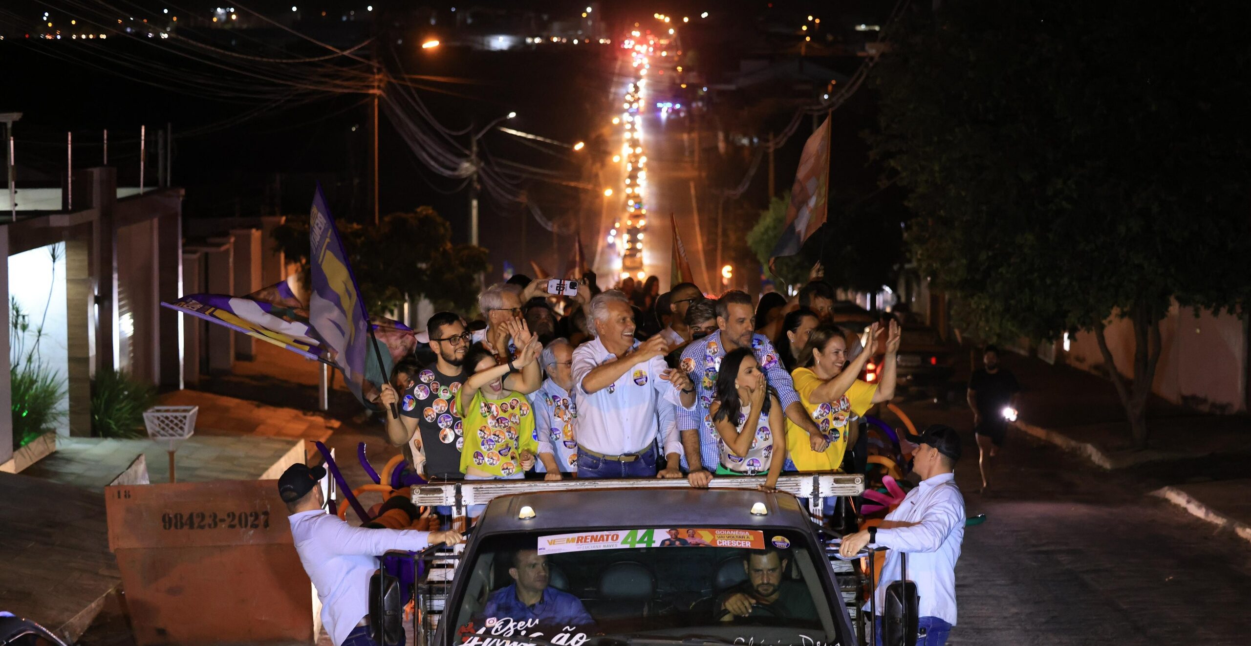 Com carros e motos a perder de vista, a carreata passou pelas principais ruas e avenidas da cidade. Durante todo o trajeto, moradores e comerciantes tomaram as calçadas para cumprimentos e manifestações de apoio. Renato já foi prefeito e agora tenta retornar ao Paço. “Deus é bom e vai te dar condições de concluir o seu segundo mandato de prefeito que vai emendar, depois, com o terceiro. Se prepare para ser uma referência na política em Goiás”, declarou o governador a seu correligionário durante o comício.