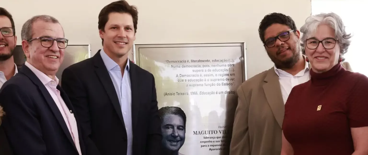 “A educação sempre foi protagonista na história política do meu pai, que foi professor. Quando foi prefeito de Aparecida, ele tinha um desejo muito forte de investir nesse setor. Aparecida não seria apenas um polo industrial, mas deveria oferecer, também, condições para que seus habitantes estudassem, se qualificassem e ocupassem espaços profissionais de destaque”, frisou Daniel ao descerrar a placa de inauguração e de homenagem a Maguito.