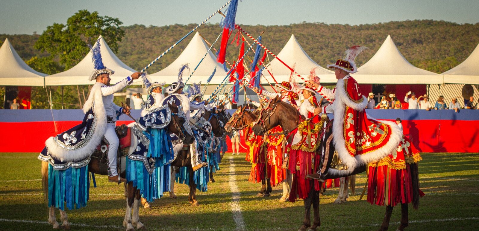 A Cidade de Goiás recebe, neste sábado e domingo (26 e 27/10), as tradicionais Cavalhadas, encenação da batalha entre mouros e cristãos. O evento será realizado a partir das 16h, no Estádio Hélio Loyola, e a entrada é gratuita. Realizada pela Prefeitura Municipal da Cidade de Goiás, o festejo integra o Circuito das Cavalhadas do Governo de Goiás, contando com investimento de R$ 4,4 milhões destinado a fortalecer a manifestação em 15 cidades goianas. Os recursos do governo estadual garantem ao público uma ampla estrutura, proporcionando um belo espetáculo a céu aberto.