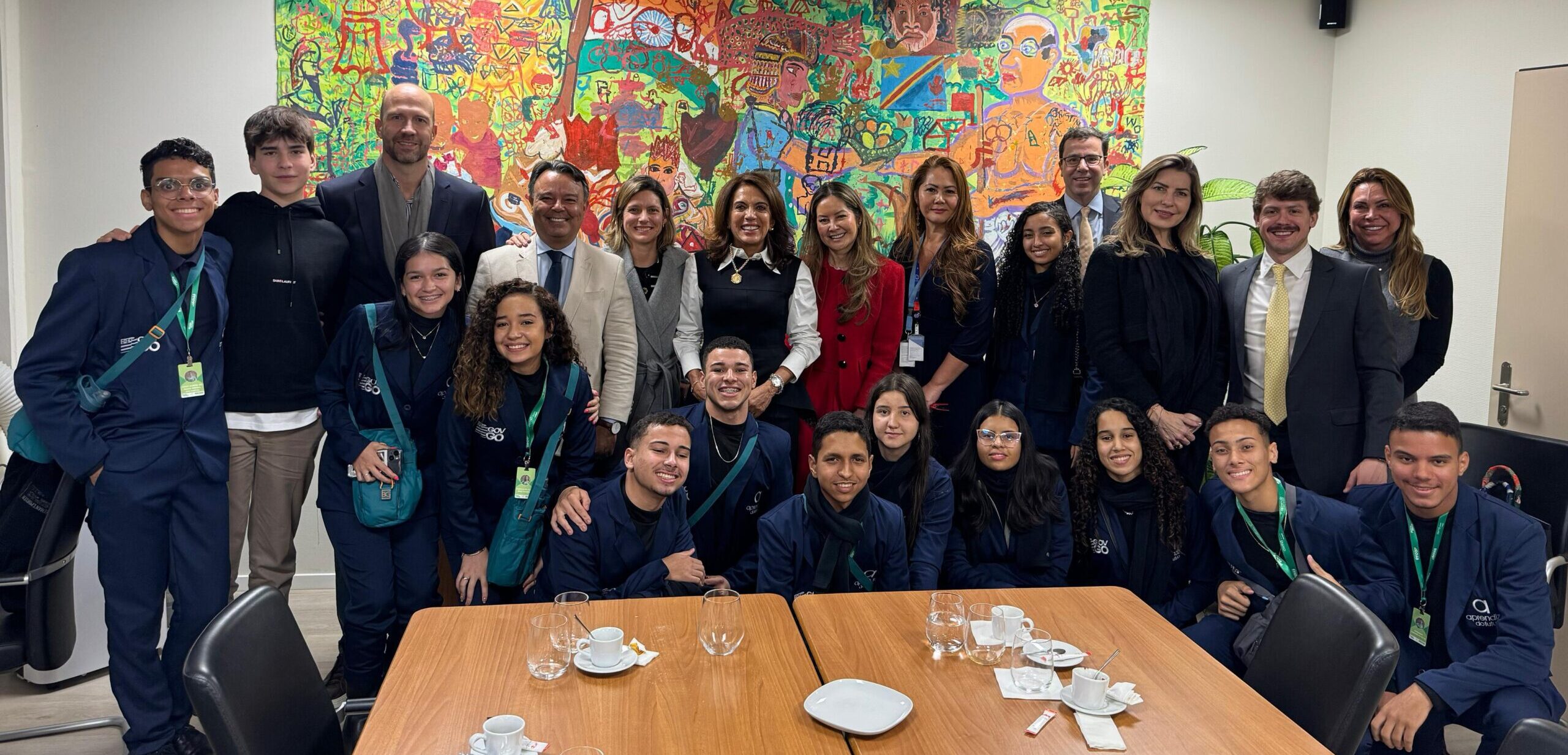Já na sede da representação do Brasil junto à ONU, a delegação goiana foi recebida pela embaixadora Cecília Kiku Ishitani, representante da Delegação Permanente do Brasil na ONU, que elogiou a iniciativa do Governo de Goiás. “A gente aqui recebe muitas pessoas importantes, mas não tão importantes quanto vocês”, disse a embaixadora aos jovens do Aprendiz do Futuro. “Vocês são vencedores, pessoas que mostram muita garra, muita determinação. Uma das grandes vantagens da juventude é essa capacidade de sempre se superar apesar das dificuldades, então, para nós é uma grande satisfação e ter políticas de governo que estimulam e incentivam isso é fundamental”, completou. Também participaram do encontro o ministro conselheiro André Simas Magalhães e a ministra conselheira Cláudia Kimiko Ishitani Christófolo.
