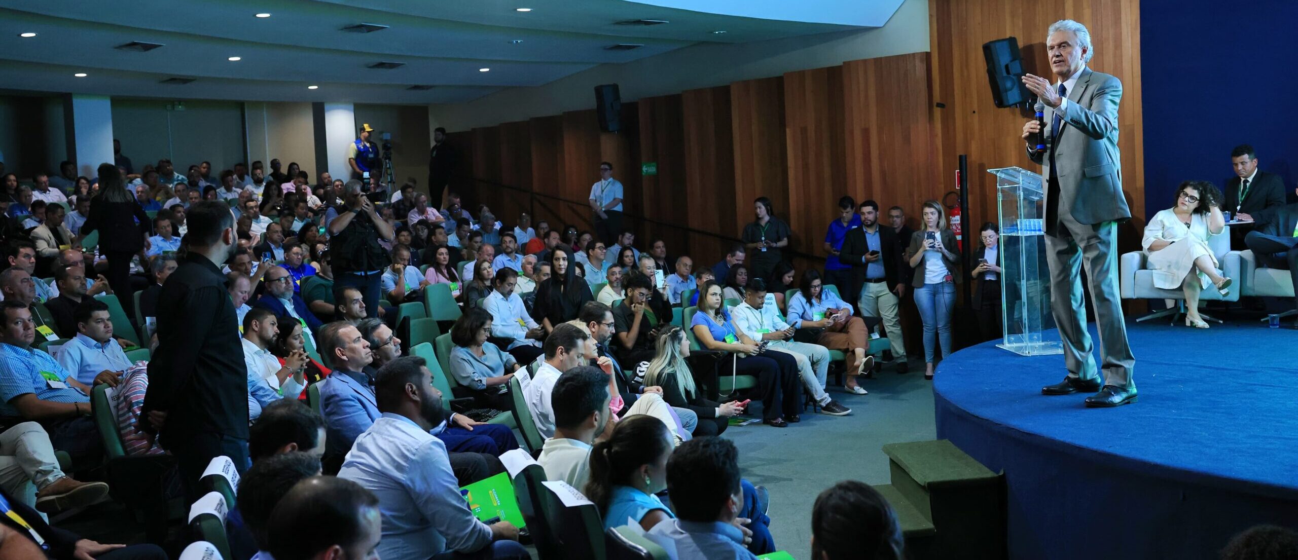 O governador Ronaldo Caiado reforçou o compromisso de apoiar as futuras gestões municipais durante a edição especial do Conecta Prefeitos, realizada na manhã desta segunda-feira (18/11), no auditório da Associação dos Magistrados de Goiás (Asmego), em Goiânia. O evento, que é destinado aos 246 prefeitos eleitos e suas assessorias técnicas, visa apresentar o portfólio dos programas e serviços oferecidos pelas Agências Goianas de Habitação (Agehab) e a de Infraestrutura e Transporte (Goinfra) aos municípios goianos.