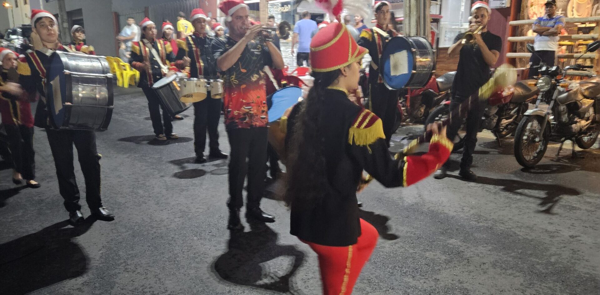 Turistas que estão na cidade de Rio Quente foram surpreendidos, na noite deste sábado 14, com a apresentação da Banda Marcial que acompanhada do Papai Noel percorreu as principais ruas do bairro Esplanada, polo gastronômico do município, entoando musicas natalinas. A apresentação faz parte dos eventos programados para o final de ano desta que é considerada a principal cidade da região das águas quentes e que se iniciaram na sexta-feira 13, com a distribuição de brinquedos e apresentação de Espetáculo de Natal. Na noite deste domingo,15, a Orquestra Filarmônica de Goiás se apresenta, às 19 horas, no Centro de Eventos da cidade.