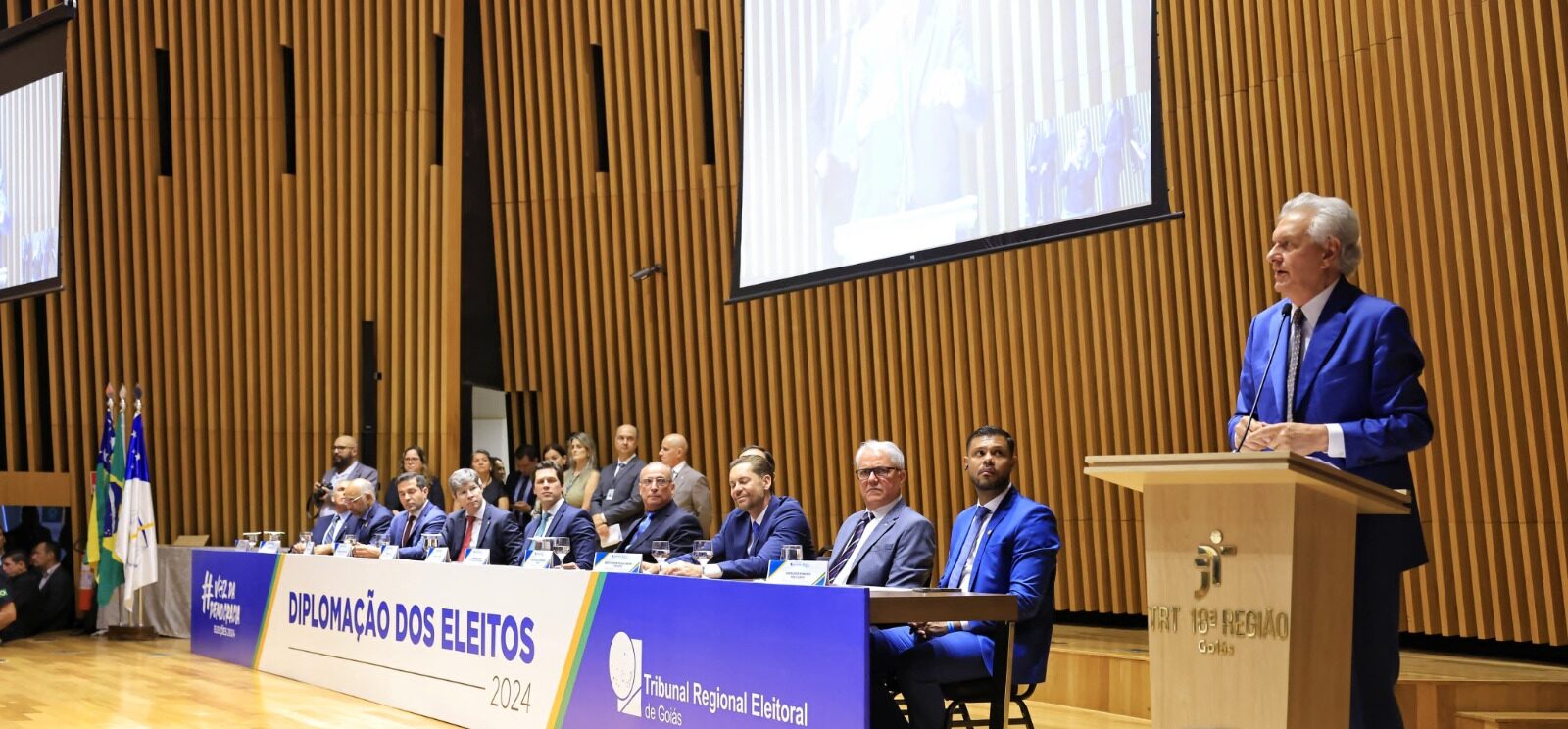 Fortalecer parcerias em prol da população goianiense. Esse foi o compromisso firmado pelo governador Ronaldo Caiado, nesta quinta-feira (19/12), durante solenidade de diplomação do prefeito Sandro Mabel (UB), da vice Coronel Claudia e dos vereadores e suplentes eleitos na capital em 2024. “Mabel vai superar as dificuldades e os momentos difíceis que a capital está enfrentando. E ele pode contar com o Governo de Goiás, estaremos de mãos dadas com esse objetivo”, assegurou o chefe do executivo goiano.