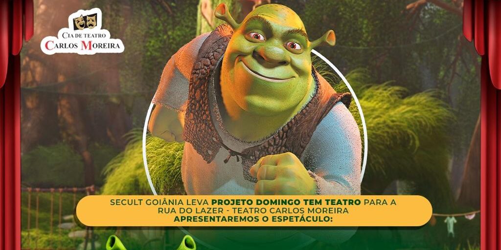 A Cia de Teatro Carlos Moreira apresenta, no domingo (23/2), a 1ª edição do projeto Domingo Tem Teatro em 2025, com a encenação do espetáculo “Shrek – O Musical”, que será realizado em duas sessões: às 9h30 e às 10h30, com vagas limitadas e mediante reserva antecipada pelo whatsApp (62) 994112195. Além do espetáculo, a programação conta também com atividades diversas, como a Feira do Empreendedor Mirim, pintura facial, brincadeiras, pipoca e algodão doce, das 9h às 12h.