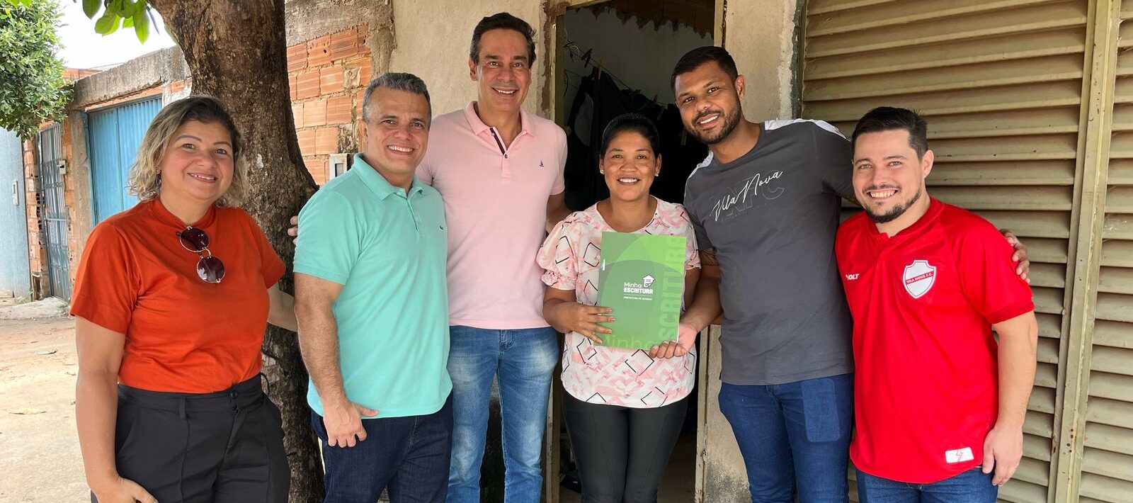 O prefeito em exercício Romário Policarpo entregou cerca de 50 escrituras a moradores do Residencial Orlando de Morais. De forma simbólica, Romário visitou a residência de dez contemplados para entregar pessoalmente o tão aguardado documento. A ação faz parte do programa Minha Escritura, lançado no último dia 9 de abril, no Paço Municipal, pelo prefeito licenciado Sandro Mabel.