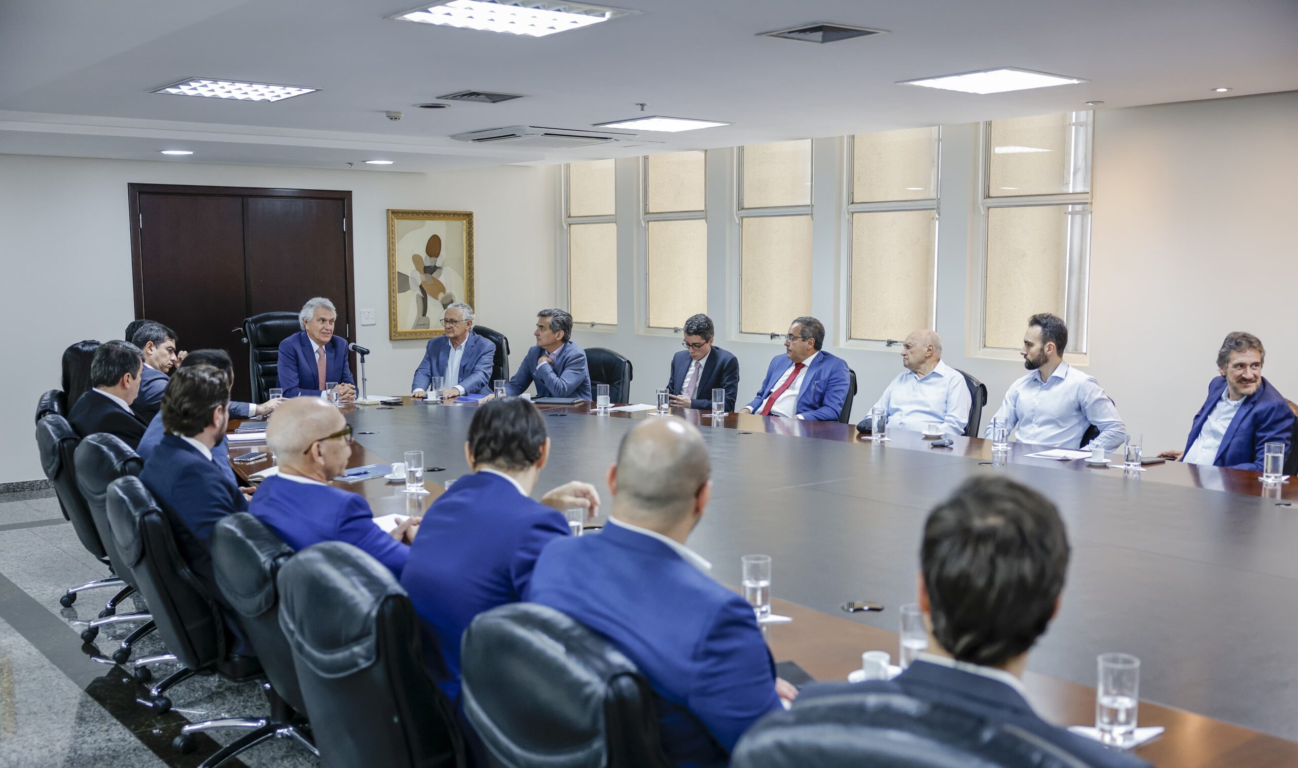 O governador Ronaldo Caiado se reuniu, na tarde desta quarta-feira (23/7), com lideranças da mineração, soja e cítrico para discutir soluções alternativas para proteger a economia goiana dos impactos da tarifa de 50% sobre os produtos brasileiros exportados para os Estados Unidos da América (EUA). A medida foi anunciada pelo presidente americano Donald Trump e tem previsão de entrar em vigor a partir de 1º de agosto. Essa foi a segunda reunião realizada pelo chefe do Executivo goiano, que pela manhã, recebeu os setores da saúde e do agronegócio.