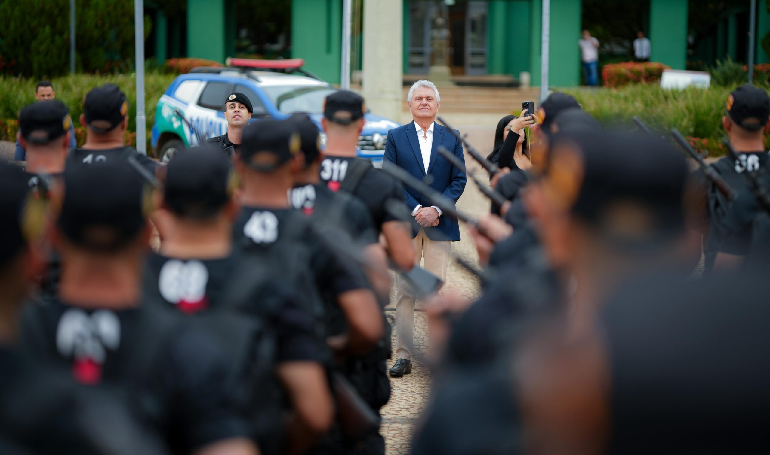 O governador Ronaldo Caiado recebeu, neste sábado (9/8), na Praça Cívica, em Goiânia, os integrantes do 22º Curso Operacional de Rotam (COR) e reforçou a postura do Governo de Goiás contra a criminalidade. “O Estado de Goiás não admite bandido achar que pode ter comando no território goiano. E, graças a vocês, nós atingimos hoje o melhor resultado no país”, afirmou ao reconhecer a alta especialização da tropa goiana.