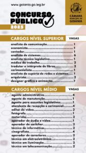 Alguns cargos terão, além da prova escrita, testes práticos de capacidade técnica, que serão detalhados no edital a ser publicado. “Conseguimos fazer essa contratação, tenho certeza de que será um concurso sério, e a Câmara fica feliz por essa colaboração da Universidade Federal de Goiás, sempre uma parceira aqui da Casa”, destacou Policarpo. “Assim, a gente cumpre o nosso compromisso de dar continuidade à carreira dos servidores efetivos da Câmara Municipal”, concluiu o presidente, lembrando ainda que, em suas gestões, foram aprovados um novo plano de cargos e salários e um estatuto próprio para os trabalhadores do Legislativo.