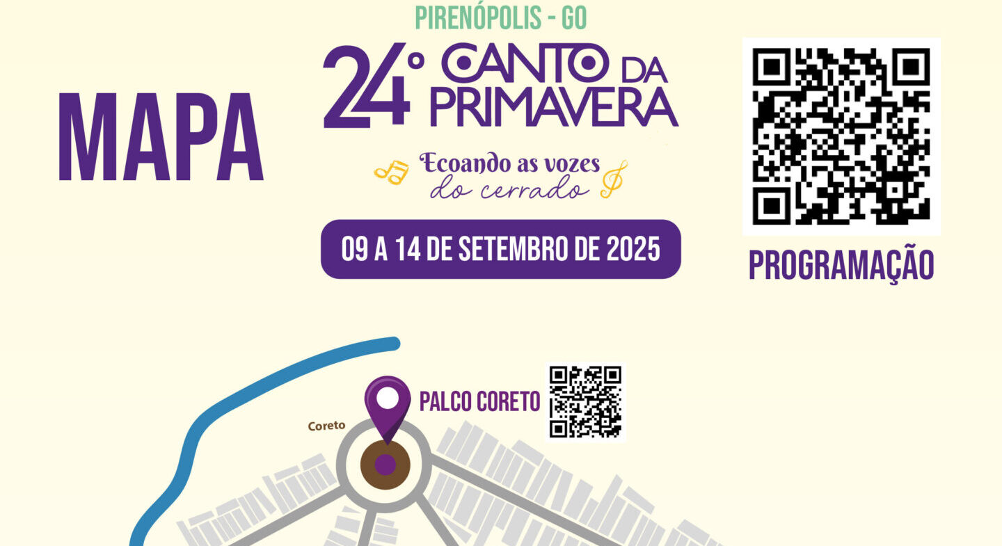 O 24º Canto da Primavera – Mostra Nacional de Música de Pirenópolis começa nesta terça-feira (09/09) e segue até domingo (14/09), consolidando-se como o maior festival de música de Goiás e uma das vitrines mais importantes da cena cultural goiana. Realizado pelo Governo de Goiás, por meio da Secretaria de Estado da Cultura (Secult), em correalização com a Universidade Federal de Goiás (UFG) e a Fundação RTVE, o evento será totalmente gratuito.