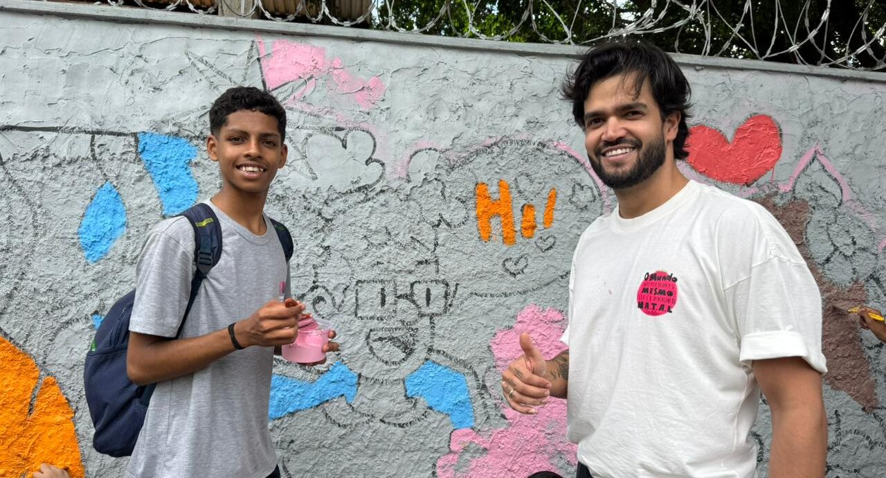 O muro interno do Centro da Juventude Tecendo o Futuro, no Jardim Novo Mundo, foi transformado na última sexta-feira (5/12). Ali, onde funciona a horta da unidade, pincéis, baldes de tinta e dezenas de jovens deram forma a um mural artístico coletivo construído ao lado do artista goiano Felipe Machado, o Gatito, em uma ação que uniu cor, participação e autoestima. A iniciativa, promovida pela Organização das Voluntárias de Goiás (OVG) e pelo Goiás Social, transformou o espaço e reforçou o compromisso do Governo de Goiás em incentivar ambientes criativos, acolhedores e cheios de novas possibilidades para a juventude.