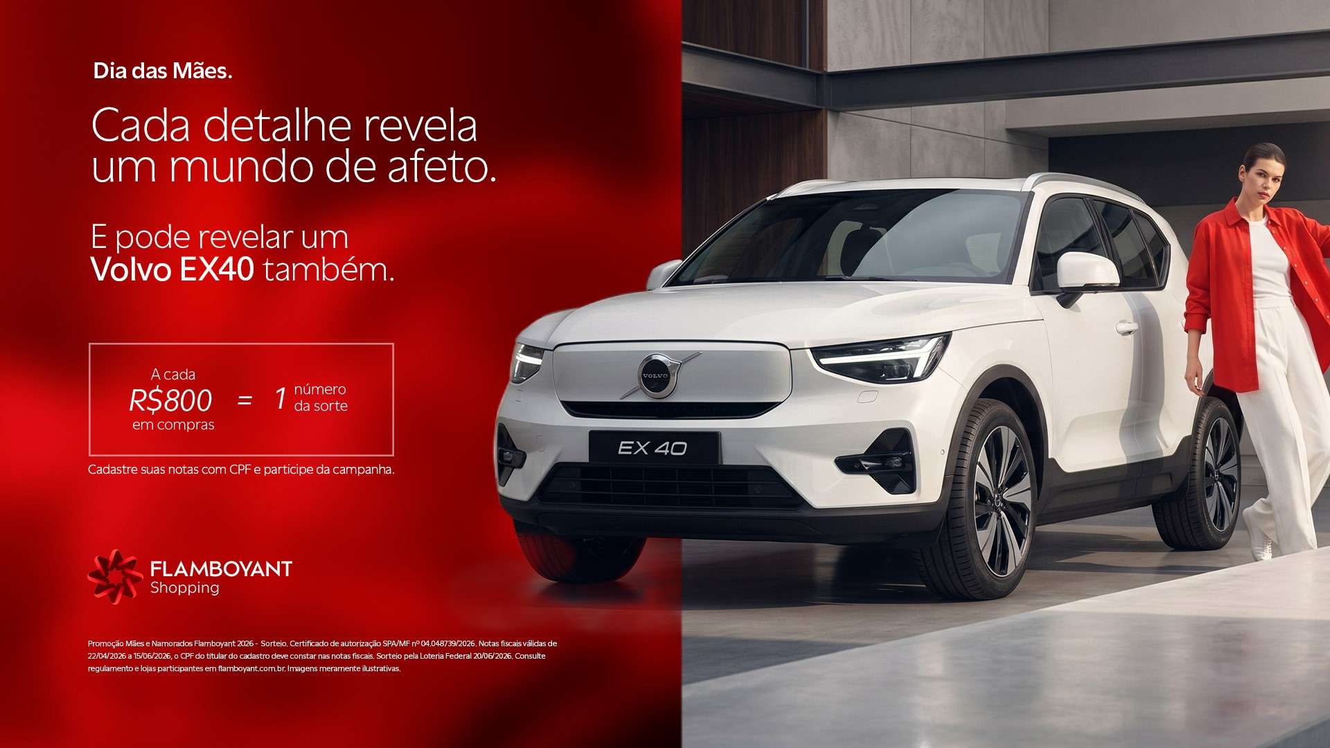 Com diversas opções para presentear e formatos para proporcionar experiências especiais, o Flamboyant Shopping é o destino certo neste Dia das Mães. Celebrando uma das datas mais importantes para o varejo brasileiro, o empreendimento anuncia o sorteio de um Volvo EX40 6 Plus 100% Elétrico. Além de luxuoso e imponente, o zero quilômetro se destaca no mercado por combinar forte desempenho, segurança avançada e um ecossistema tecnológico bem integrado.