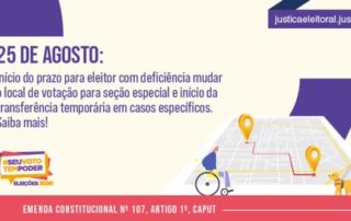 Começa no dia 25 de agosto o prazo para o eleitor com deficiência ou mobilidade reduzida apresentar à Justiça Eleitoral pedido de transferência para votar em uma seção especial de [...]