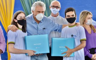 Em Mossâmedes, Caiado autoriza reforma de escola e entrega computadores a estudantes,