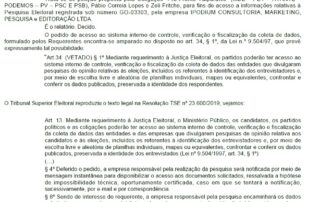 A 33ª Zona Eleitoral determinou a divulgação no prazo máximo de 48 horas, de informações relativas à Pesquisa Eleitoral registrada sob o número GO-03303, pela empresa PODIUM CONSULTORIA, MARKETING, PESQUISA [...]